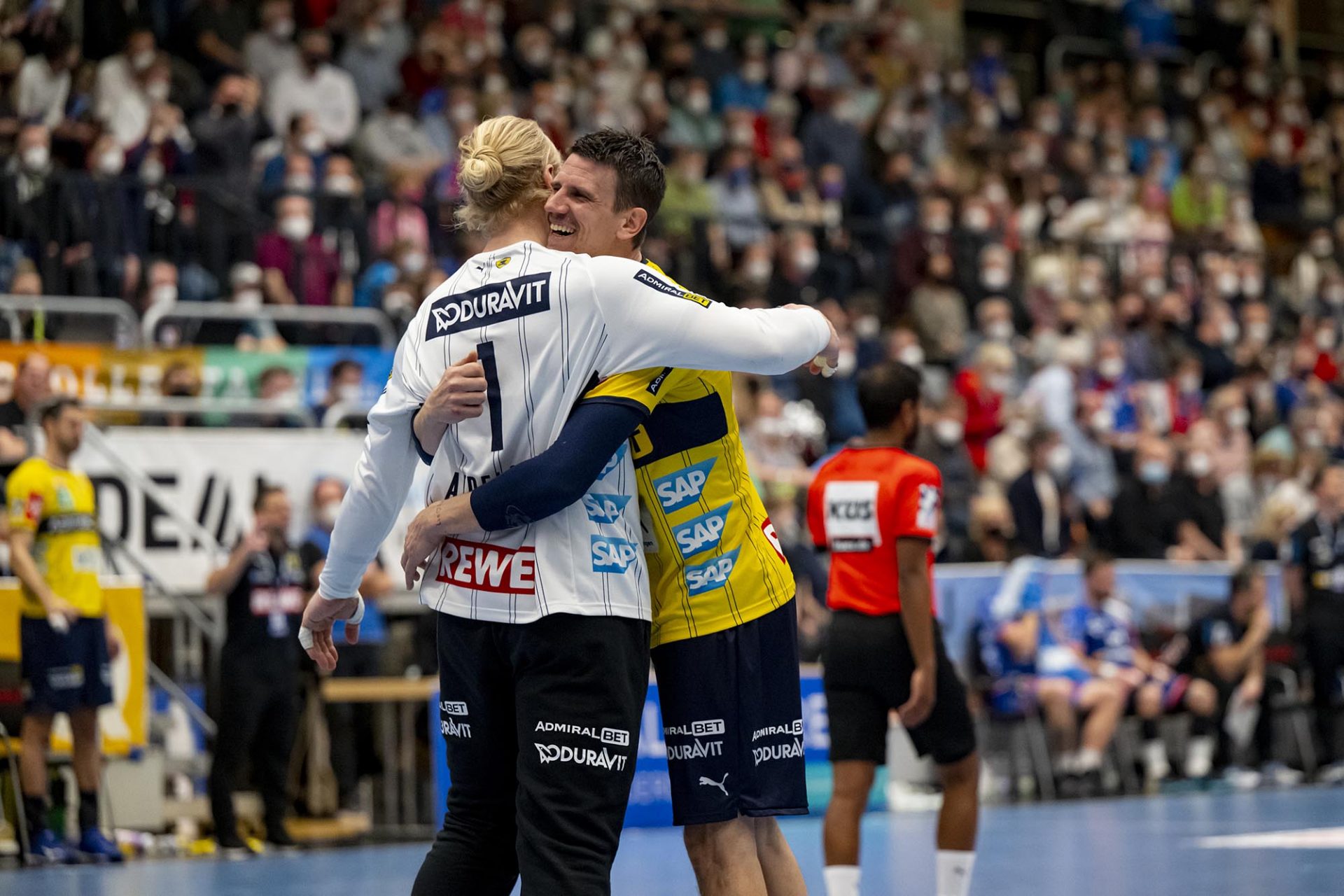 Mikael Appelgren #1 RNL Andy Schmid #2 RNL , HBW Balingen-Weilstetten vs. Rhein-Neckar Loewen , RNL Saison 2021 / 2022, © Copyright: AS Sportfoto / Soerli Binder, www. as-sportfoto.de, MSP_2403_RNL_