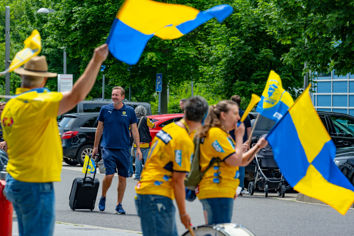 » MehrGlücklich ist, der solche Fans hat: Mit wehenden Fahnen, Tröten und Trommeln empfangen die Mitglieder des Löwen-Fanclub Baden Lions zum Saisonfinale ihre Helden vor der SAP Arena in Mannheim. Einen schöneren Anblick kann es aus Löwen-Sicht nicht geben.