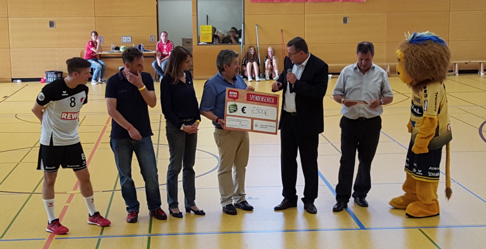 Auch in diesem Jahr kam der Auftritt der Löwen einem wohltätigen Zweck zugute, denn REWE unterstützt mit den gesamten Einnahmen der Veranstaltung die Lebenshilfe Karlsruhe, Ettlingen und Umgebung e. V.. Vor Anpfiff überreichte Klaus-Peter von Nethen seitens der REWE einen Scheck in Höhe von 7500€ an Geschäftsführer Uwe Dürr, der ankündigte die Spende für den Betreuungsbereich Ettlingen wohlbringend zu investieren.