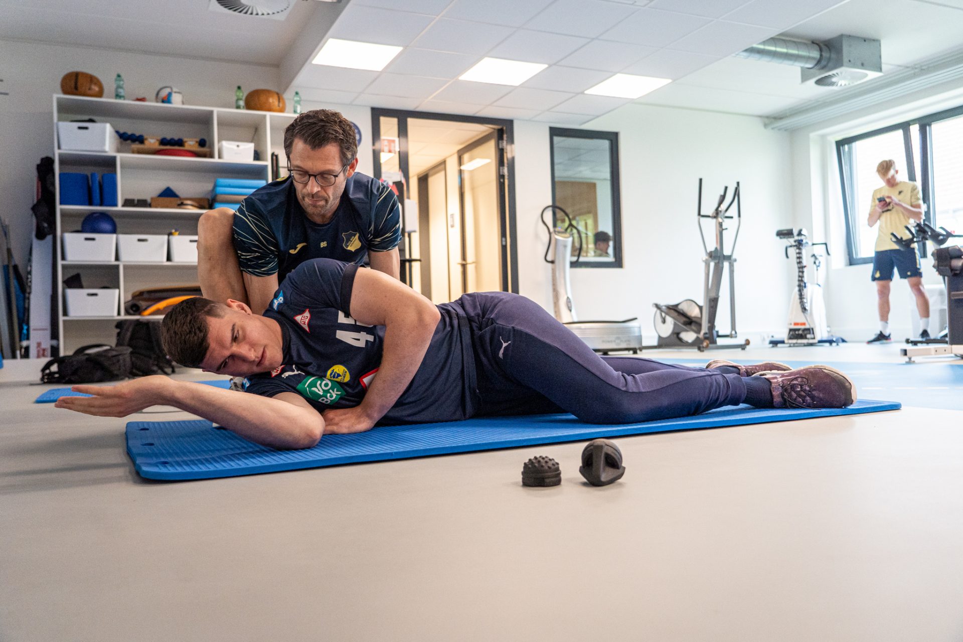 In der Welt des Sports gibt es kaum Wichtigeres als die Chance, sich von Verletzungen zu erholen und gestärkt zurückzukommen – unabhängig davon, ob es sich dabei um die Sportart Handball, Fußball oder Basketball handelt. Da die TSG 1899 aus Hoffenheim über ein erstklassiges Rehabilitationszentrum verfügt, geben die Löwen ihre Spieler bereits seit mehreren Jahren in die Obhut des fachkundigen Teams aus Sportwissenschaftlern, Sport- und Physiotherapeuten. Eine Kooperation, die ebenso wirksam wie naheliegend ist. Einer dieser Experten ist Reha-Trainer und Sportwissenschaftler Bernd Steinhoff, der unter anderem bereits Mikael Appelgren auf dessen Weg zurück aufs Spielfeld unterstützt hat und seit mehreren Monaten nun auch intensiv mit Halil arbeitet. Dass sich die Reha-Maßnahmen und Schulterübungen des wurfgewaltigen Halblinken erheblich von denen eines Fußballers unterscheiden – eine Gegebenheit, die Bernd gleichzeitig als spannend und freudige Abwechslung betitelt.